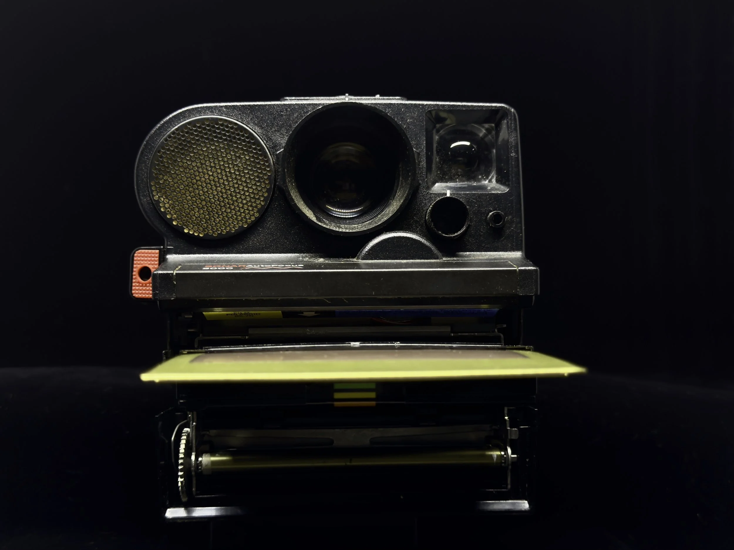 Un Polaroid 5000 Sonar Autofocus noir sur un fond noir